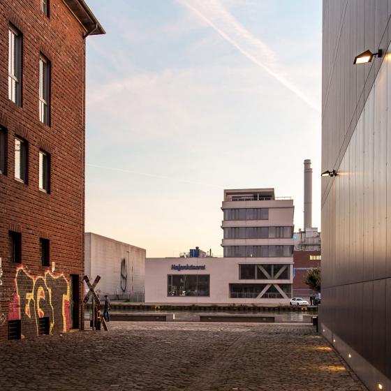 In der räumlich qualitätvollen Verzahnung der Besucherbereiche sowie der Produktion liegt die besondere Qualität der Arbeit. Besucher, aber auch Betrachtern von außen bietet sich durch die hohe Transparenz der Arbeitsprozesse die Gelegenheit, Einblick in einen zeitgemäßen Produktionsbetrieb zu nehmen und Interesse zu wecken. Durch die Materialwahl, u. a. Sichtbeton, wird der robuste Charakter des Hafenviertels unterstrichen. Gleichzeitig wird dem Gebäude durch großzügige Glasflächen eine sonst zu befürchtende Schwere genommen.