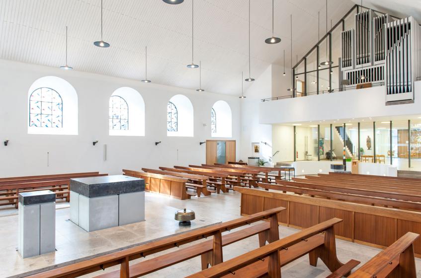 Die Investitionsmaßnahme der Filialkirche St. Joseph beinhaltet die Integration des Pfarrheims in die Kirche sowie die Einrichtung einer Kindergartengruppe als Ergänzung zum benachbarten Neubau.