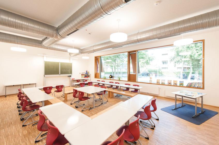 Das bestehende Ensemble der Mariengrundschule wurde durch ein neues Schulhaus mit 8 Klassenräumen ergänzt. Positioniert entlang der Straße fasst das neue Klassenhaus den vorhandenen Schulhof und schafft einen geschützten Platz im Bereich des Haupteingangs. Mit diesem Schulhaus zeigt sich die Grundschule mit einen neuen modernen Gesicht zur Stadt. Ortsüblicher Klinker ermöglicht eine harmonische Einbindung in die Umgebung. Das leicht gefaltete Dach sorgt für ein spannungsreiches und individuelles Volumen. Die Klassenräume gruppieren sich um eine Aufenthaltsfläche, die mit ihrer Art der Möblierung einen Bereich für Kommunikation, aber auch Rückzug oder einfach nur Erschließung schafft. Ein Glasgang verbindet zurückhaltend und barrierefrei das neue Klassenhaus mit dem Bestand.