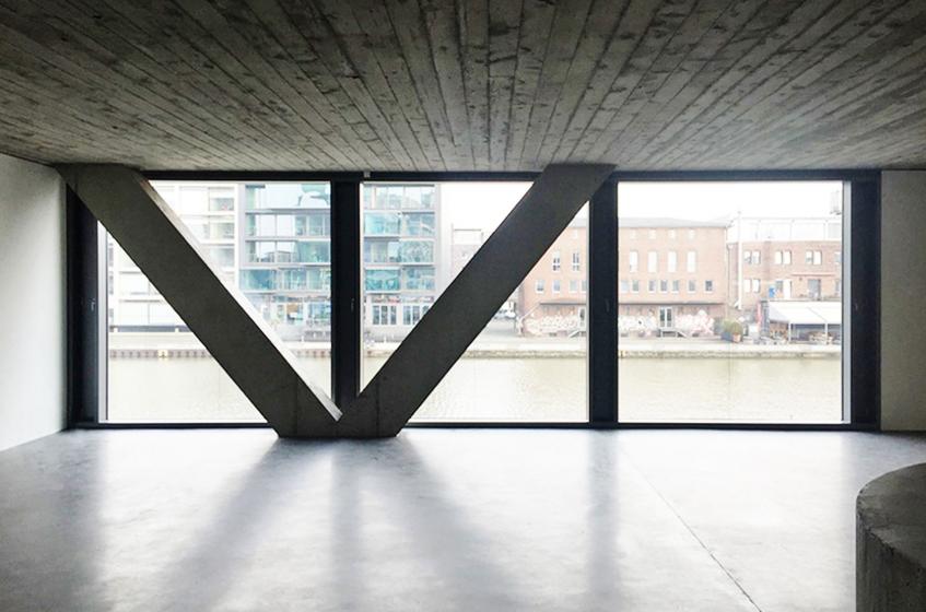 In der räumlich qualitätvollen Verzahnung der Besucherbereiche sowie der Produktion liegt die besondere Qualität der Arbeit. Besucher, aber auch Betrachtern von außen bietet sich durch die hohe Transparenz der Arbeitsprozesse die Gelegenheit, Einblick in einen zeitgemäßen Produktionsbetrieb zu nehmen und Interesse zu wecken. Durch die Materialwahl, u. a. Sichtbeton, wird der robuste Charakter des Hafenviertels unterstrichen. Gleichzeitig wird dem Gebäude durch großzügige Glasflächen eine sonst zu befürchtende Schwere genommen.