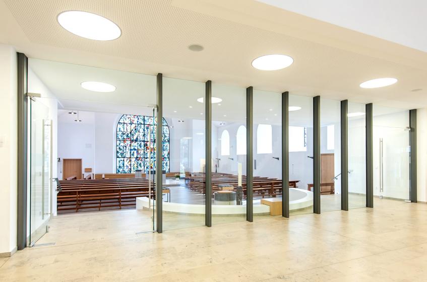 Die Investitionsmaßnahme der Filialkirche St. Joseph beinhaltet die Integration des Pfarrheims in die Kirche sowie die Einrichtung einer Kindergartengruppe als Ergänzung zum benachbarten Neubau.